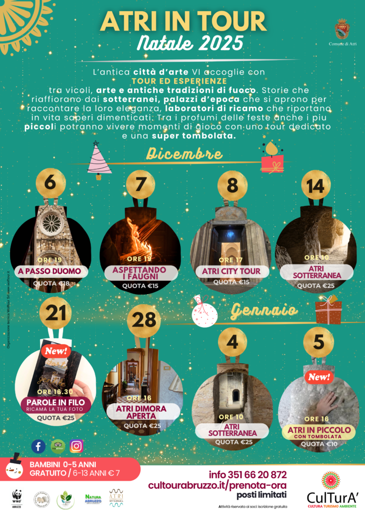 Visita guidata dedicata ai più piccoli, alla scoperta delle principali bellezze di Atri, con una SUPER TOMBOLATA finale.